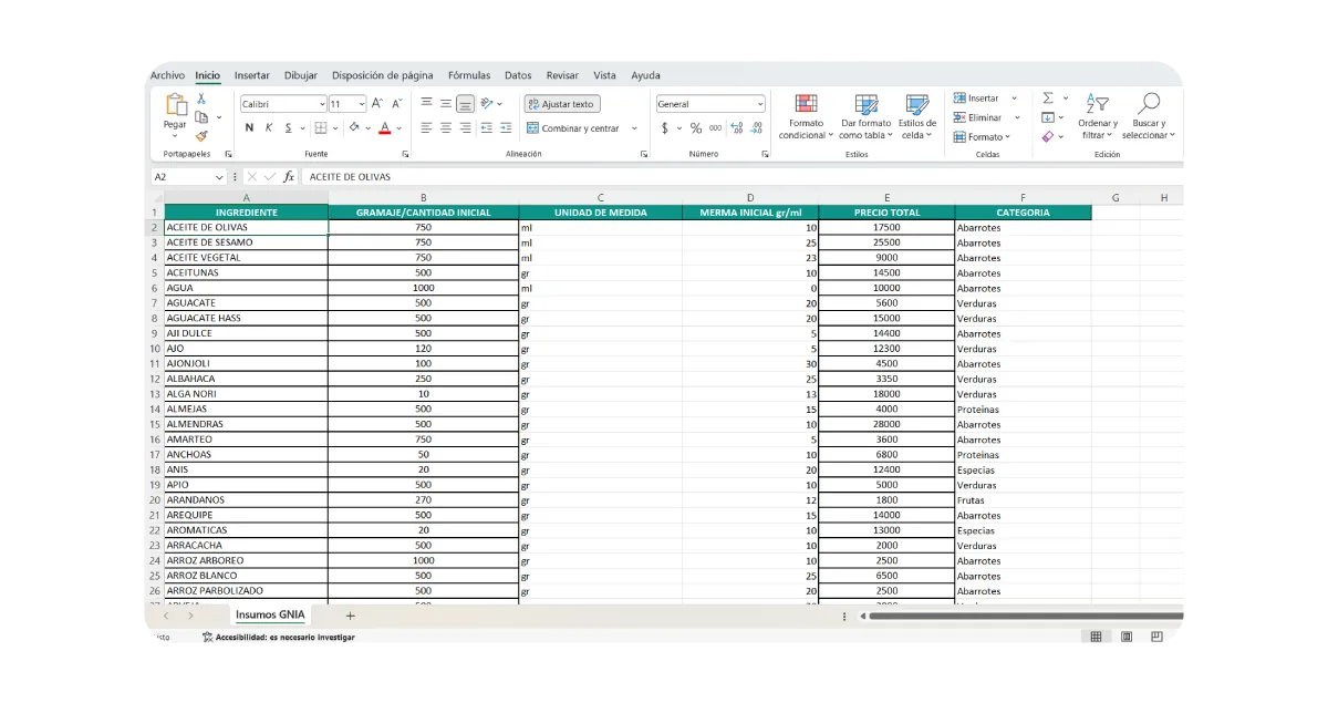 De Excel a GNIA Migración de Insumos